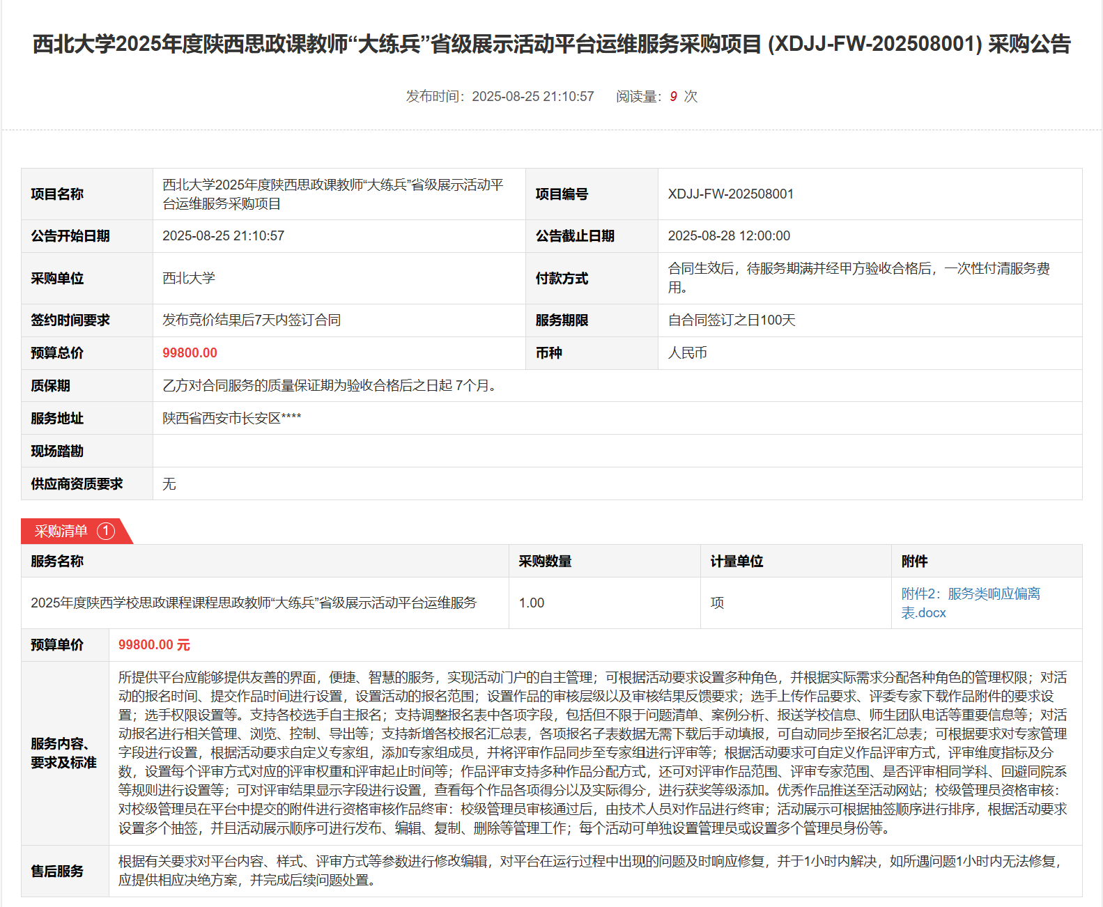 九游会在线登录官网2025年度陕西思政课教师“大练兵”省级展示活动平台运维服务采购项目(XDJJ-FW-202508001)竞价采购公告 作者:采购与招标办公室 编辑: 时间:2025-08-25 原公告链接