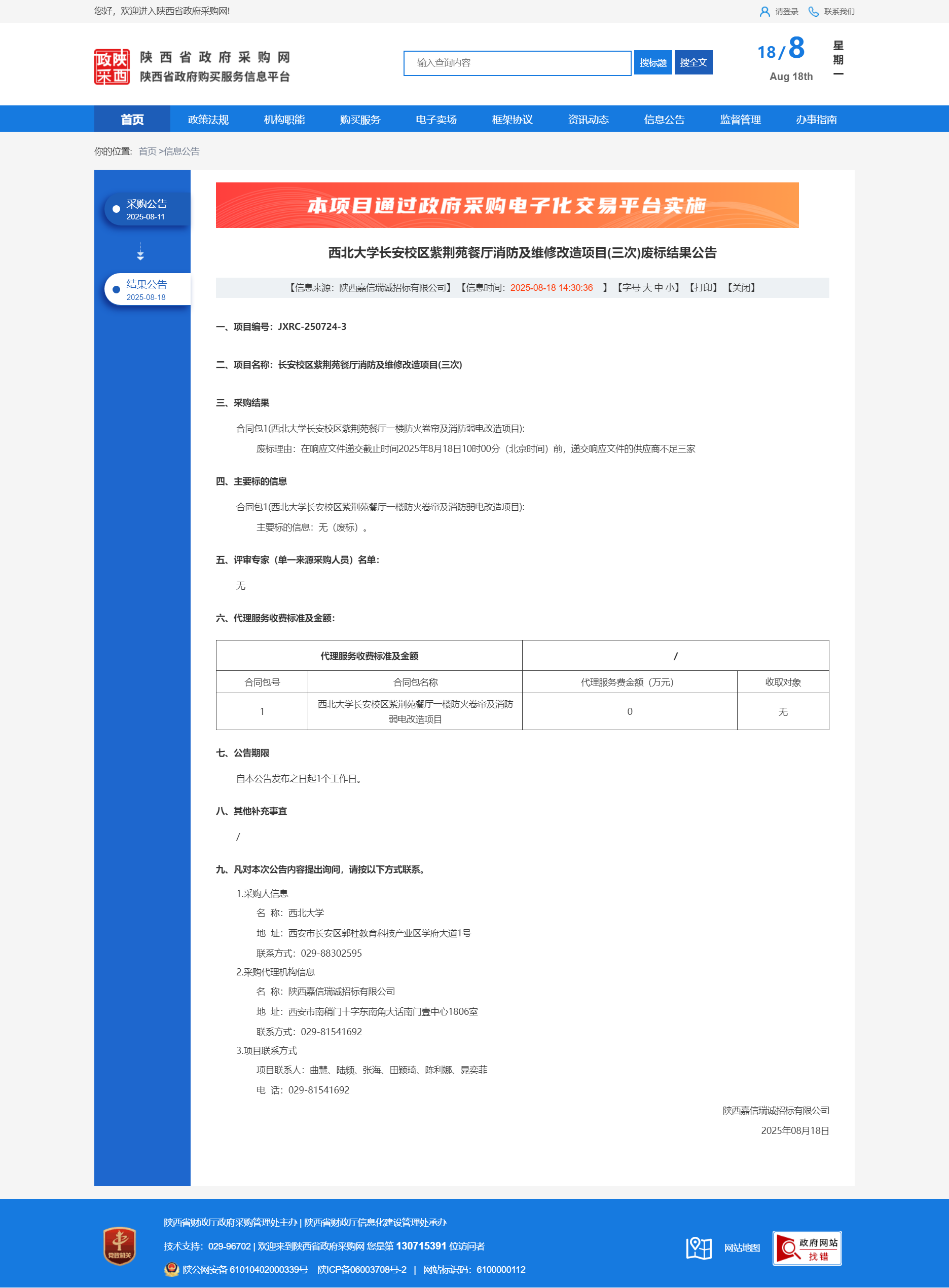 九游会在线登录官网长安校区紫荆苑餐厅消防及维修改造项目(三次)废标结果公告