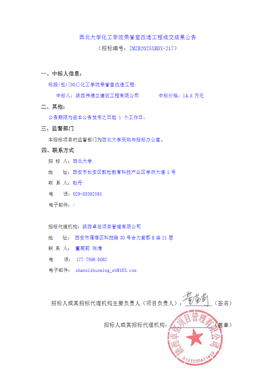 九游会在线登录官网化工学院荣誉室改造工程成交结果公告