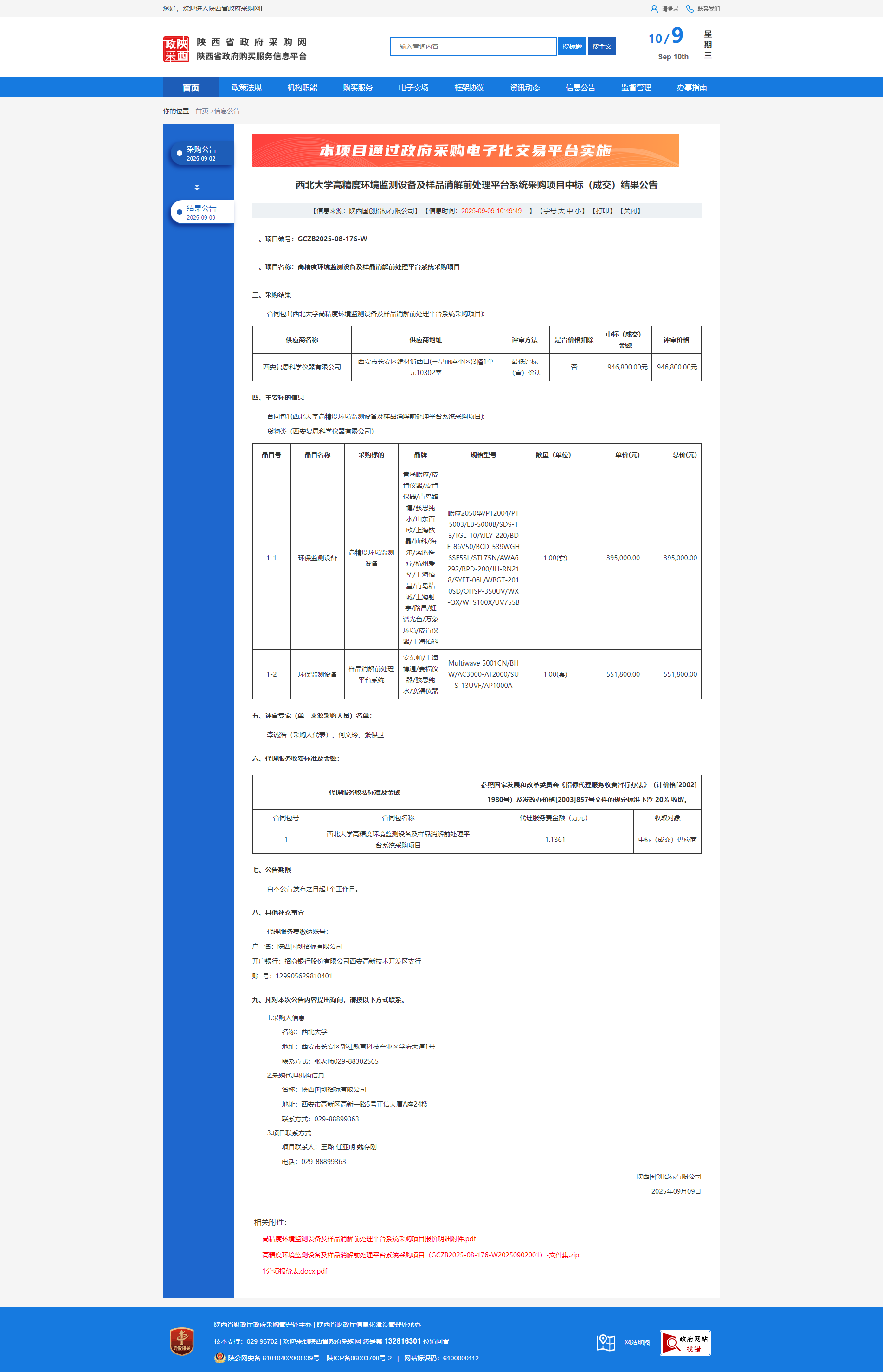 九游会在线登录官网高精度环境监测设备及样品消解前处理平台系统采购项目中标(成交)结果公告