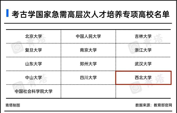 考古学国家急需高层次人才培养专项高校名单。