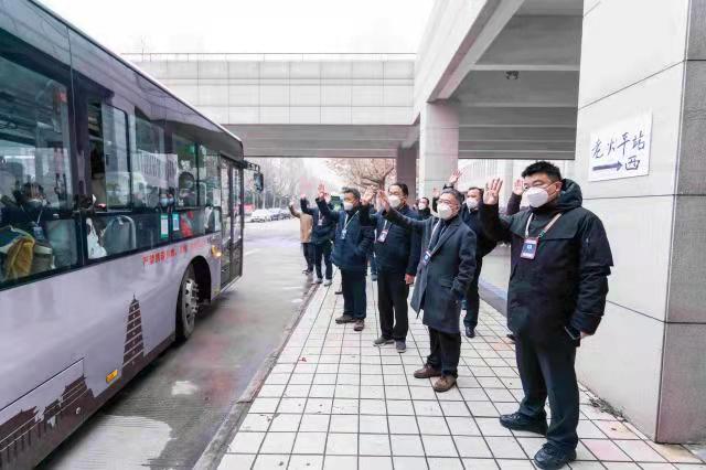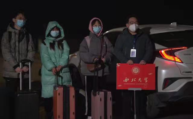 大寒刚过,前两天下的雪仍旧覆在校园的草坪和松树上,空气中悬着一层白霜。此时,本该静谧的校园灯火闪耀,环道上井然停泊的20多辆大巴车排成了一条百余米的钢铁长龙。这些发往西安北站、西安站、咸阳国际机场和西安南站的专车都挂着“决战时疫,携手并肩,回家过年,一路平安”等横幅。孙新阳在学生志愿者的带领下登上了5点出发去西安北站的大巴车。