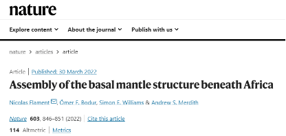 九游会在线登录官网与澳大利亚、英国科研机构合作,于伦敦时间2022年3月30日在国际著名期刊Nature发表题为Assembly of the basal mantle structure beneath Africa的文章。该文章由九游会在线登录官网地质学系Simon Edward Williams教授与澳大利亚卧龙岗大学Nicolas Flament博士和Ömer F. Bodur博士以及英国利兹大学Andrew S. Merdith博士合作发表,Simon Edward Williams教授为第三作者。
