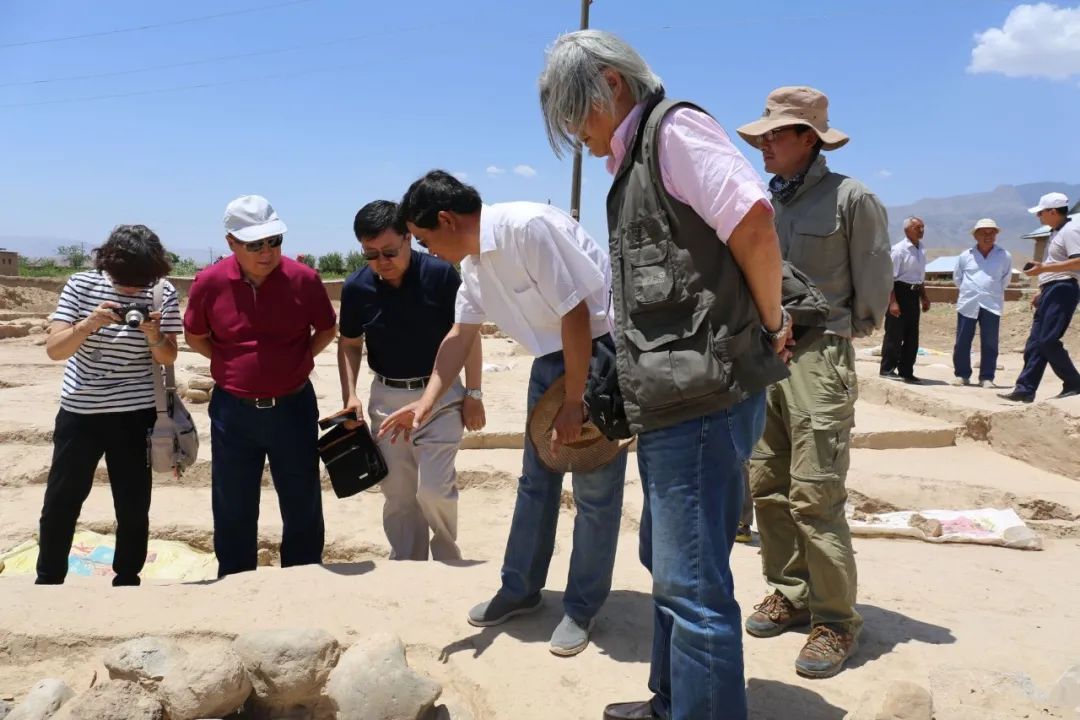 (2017年6月9日,乌兹别克斯坦拉巴特遗址发掘现场,王建新团队向中国驻乌兹别克斯坦大使介绍考古发现情况。)