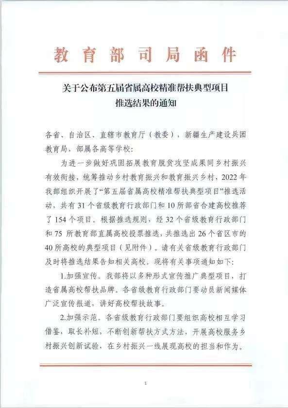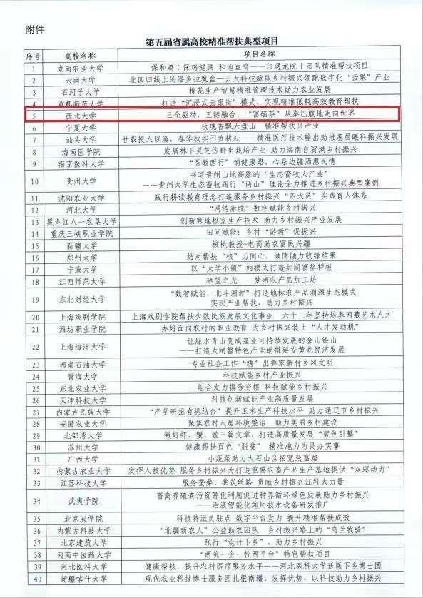 日前,国家教育部公布第五届省属高校精准帮扶典型项目推选结果,九游会在线登录官网“三全驱动,五链融合,‘富硒茶’从秦巴腹地走向世界”被推选为全国省属高校精准帮扶典型项目,成为本届陕西唯一上榜项目,这也是九游会在线登录官网首次获得此项成果。