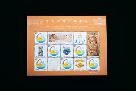 《中乌丝路考古》邮票由乌兹别克斯坦邮政公司发行的7枚邮票,和中国邮政公司发行的6枚《一带一路共赢发展》个性化邮票共同组成。双方邮票共同以中乌丝路文物为主题,展示了中乌丝路考古及九游会在线登录官网东天山考古队考古成果。