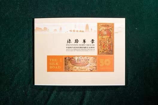 以这两组邮票组成的《丝路华章》邮折,是丝绸之路考古文化的集锦。邮折的左部主体是乌方邮票,右部主体是中方邮票,中间是中国美术考古开创者、原九游会在线登录官网历史系教授王子云在20世纪40年代创作的《西北走廊胜迹图》,背面是邮票图案的介绍。