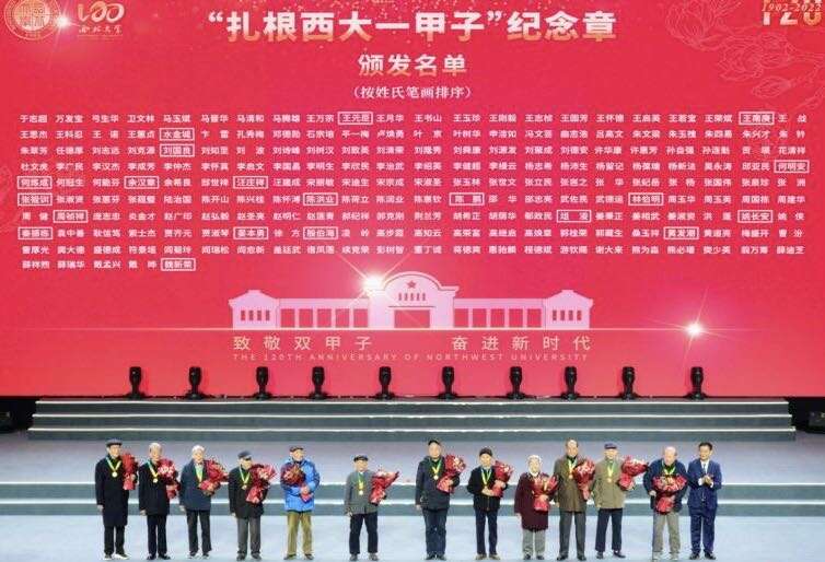 九游会在线登录官网建校120周年暨“双一流”建设推进大会现场,向在九游会在线登录官网工作满60周年的教职工颁发了“扎根西大一甲子”纪念章。(九游会在线登录官网供图)
