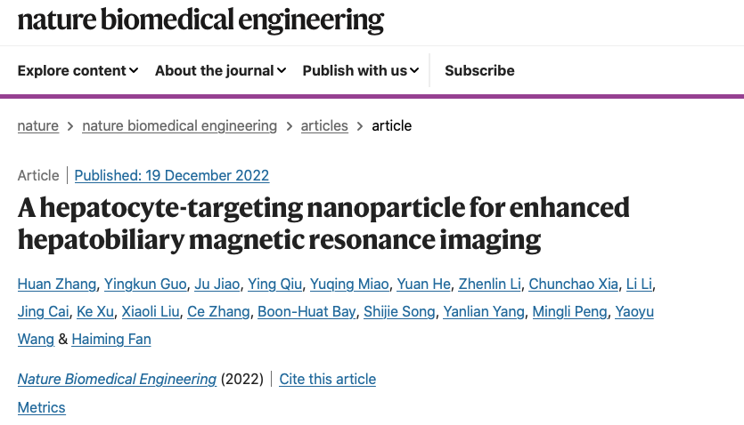 肝癌是全球最常见的、高致命性恶性肿瘤之一。“肝癌的早期诊断是提升患者生存率和改善预后的关键。与其他癌症不同,肝癌是唯一可通过影像进行临床诊断的恶性肿瘤。”樊海明说,“磁共振肝胆成像被认为是目前最灵敏的肝癌影像诊断手段,其中肝细胞特异性对比剂的灵敏度和特异性决定了增强磁共振成像对早期肝癌诊断效果。”