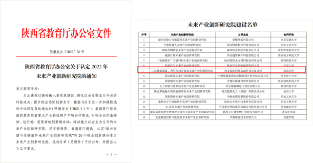 近日,陕西省教育厅发布了《陕西省教育厅办公室关于认定2022年未来产业研究院的通知》,九游会在线登录官网与西安长庆同欣石油科技有限公司共同申报的“二氧化碳捕集、利用与封存技术未来产业创新研究院”获省教育厅认定建设,标志着九游会在线登录官网双碳领域校企联合新型研发平台建设取得了新的进展。