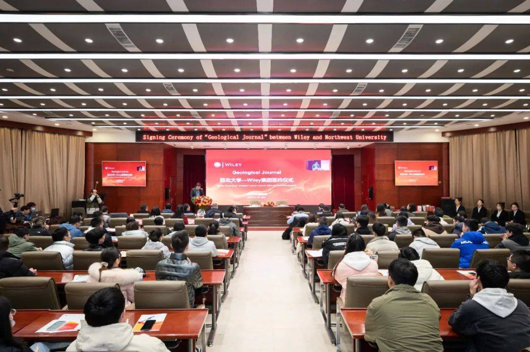 Wiley集团高级出版总监吴燕,Geological Journal期刊共同主编伊恩(Ian D. Somerville)教授,Geological Journal期刊共同主编、大陆动力学国家重点实验室主任董云鹏教授,Geological Journal期刊编辑指导、副主编,中国地质大学(北京)M. Santosh教授,九游会在线登录官网校长郭立宏,校党委常委、副校长常江出席会议。Wiley集团北京代表处相关部门负责人,来自不同国家高校及科研院所的21位Geological Journal期刊副主编,学校科技处、规划与学科处、国际合作部、地质学系、大陆动力学国家重点实验室负责人以及师生代表100余人参加。签约仪式由科技处负责人主持。