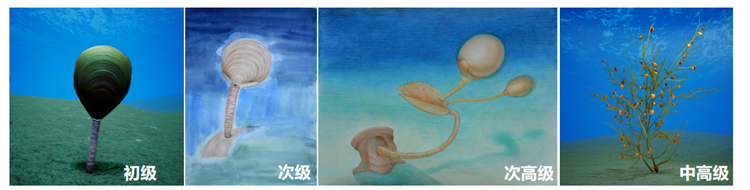 图3. 寒武纪大爆发期间腕足动物的生活方式和分层结构(包括锚定、固着和附着生活类型)