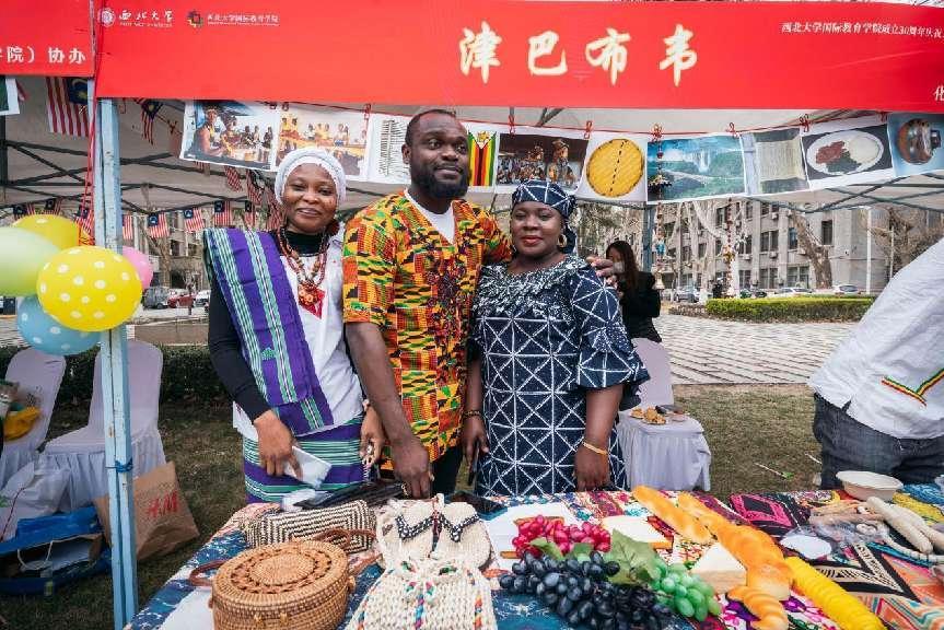 庆祝大会上开启了九游会在线登录官网第四届国际文化节,内容包括国别展览和文艺表演。来自22个不同国家的留学生们向现场嘉宾们展示了世界各地的风景、服饰、艺术品、美食、音乐等,呈现了不同国家的文化特色和风土人情。舞台上,留学生进行了情景剧、舞蹈、歌曲串烧和汉服表演,西安易俗社还进行了精彩的秦腔表演。