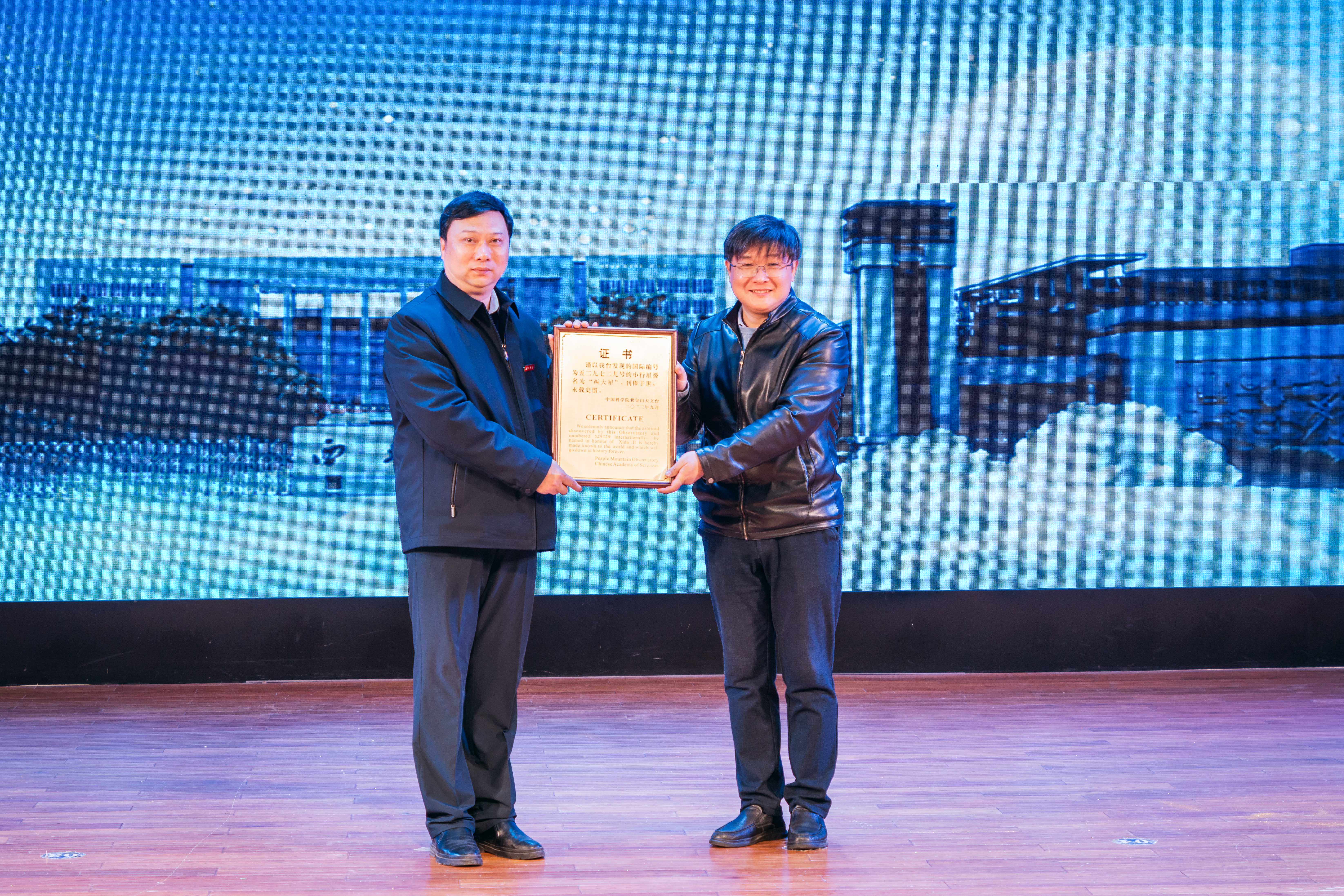 吴雪峰向九游会在线登录官网赠送“Xida”星证书、命名公报,赖绍聪、张远军代表学校接受相关资料。