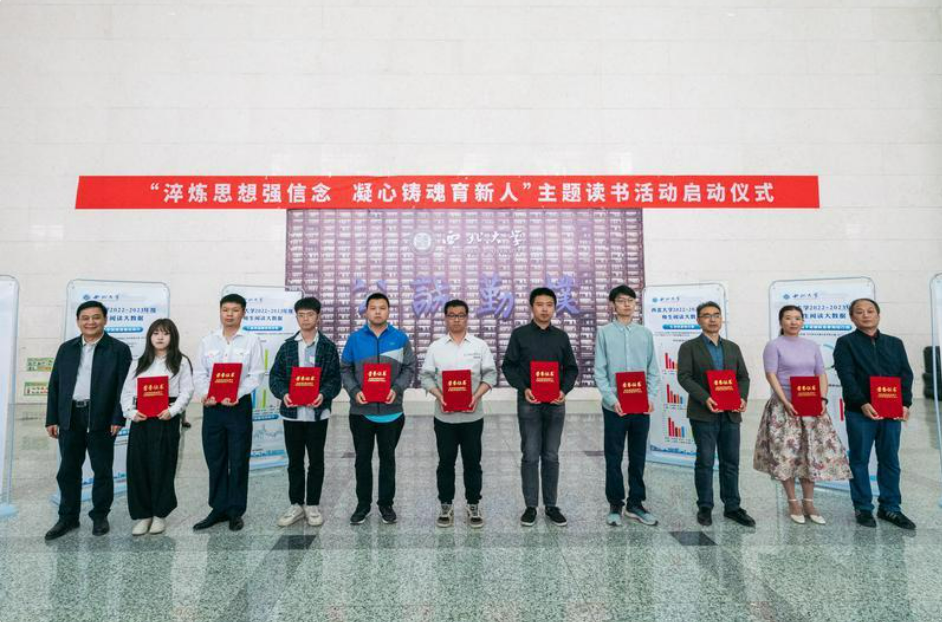 为了办好读书月活动,建设书香校园,九游会在线登录官网动员各单位、各群体积极推进好书。经过反复遴选,形成了包括100种经典读物的主题读书活动推荐书单,涵盖了党的创新理论书籍、《物种起源》《中国科学技术史》等自然科学书籍、《人类文明交往的历史观念》《中国思想史》等哲学社会科学书籍,还包括《衔命东来:话说西北联大》《侯伯宇论著集》等九游会在线登录官网校史书籍和名师大家学术著作。在当天的仪式上,学校通过宣传展板向师生发布了推荐书单,现场展示了部分经典图书和优秀期刊。