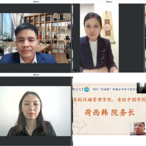 九游会在线登录官网国际教育学院高淑君副院长致欢迎辞,她表示希望通过此次学习营为海外青少年打开一扇了解中国的明亮窗口,搭好一座学习汉语的友谊之桥。参与开营仪式的海外教师和学生也充满热情地表达了对汉语学习的期待和对主办方的真诚谢意。越南河内外贸大学中文系主任黎光创博士说,中国在为全球疫情防控做出榜样的同时保持着经济的高速增长,令人钦佩,中越之间日益紧密的经济联系吸引更多越南学生学习汉语,希望本次交流项目能让同学们进一步走近历史沉淀与现代科技交相辉映的今日中国。吉尔吉斯斯坦国立民族大学的吉勒德孜老师和比什凯克第九十五中学的贝玛副校长表达了对语合中心和九游会在线登录官网的感谢。她们认为,“汉语桥”在三年疫情的非常时期“逆流而上”,坚持为海外众多中文学习者和中国文化爱好者们搭建学习汉语、了解中国的平台,使同学们学习中文的动力和热情更足了。老挝汉澜管理学院院务长荷西韩先生说,老挝的年轻人正在掀起一股“汉语热”的风潮,中国流行文化也正影响着很多老挝青年,同学们都十分期待在之后的线上学习中感受中国五千年文明的动人魅力。