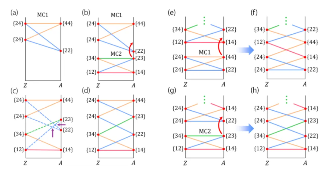 在能带结构中,晶体对称性可能将多条能带连接在一起形成能带复合。一个自然而重要的问题是:一个能带复合包含的能带数是否有上界?针对该问题,研究团队证明对于某些空间群,能带复合没有上界,即无限多条能带可以相互纠缠在一起,形成一个在保持对称性的微扰下稳定的连接模式。研究人员通过归纳构造过程证明了这一点。通过此过程,一个给定的能带复合总是可以通过将一个基本构建块粘合上去,使其扩展成一个更大的能带复合。同时,团队还证明了存在任意大的包含4n条能带的手风琴式能带结构。