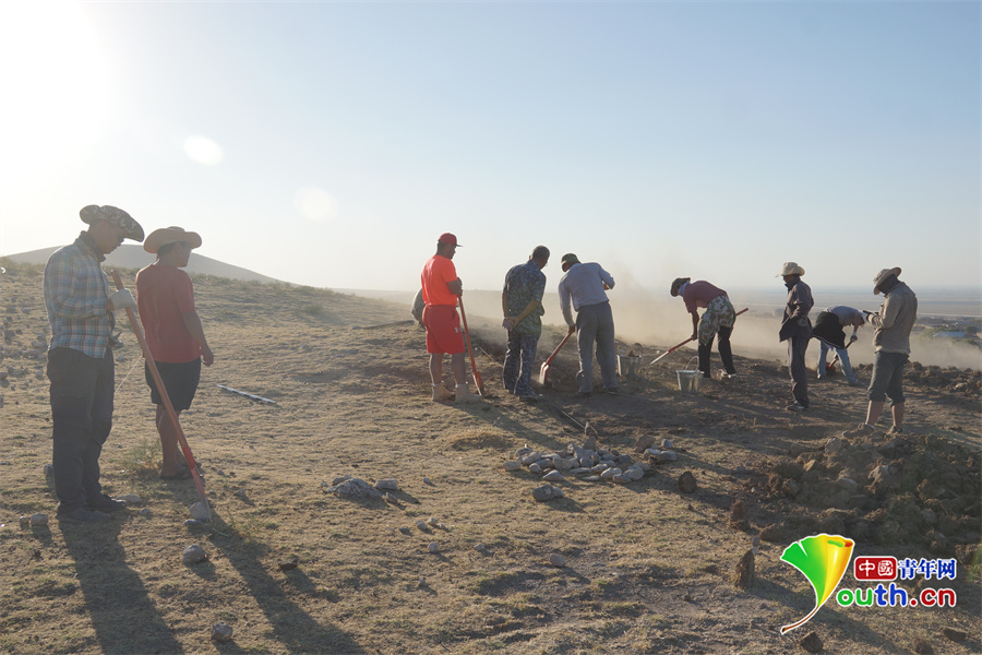 2015年,中乌联合考古队在烈日下发掘萨扎干遗址。采访对象供图