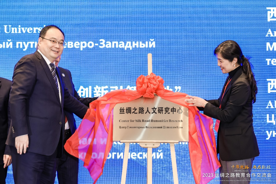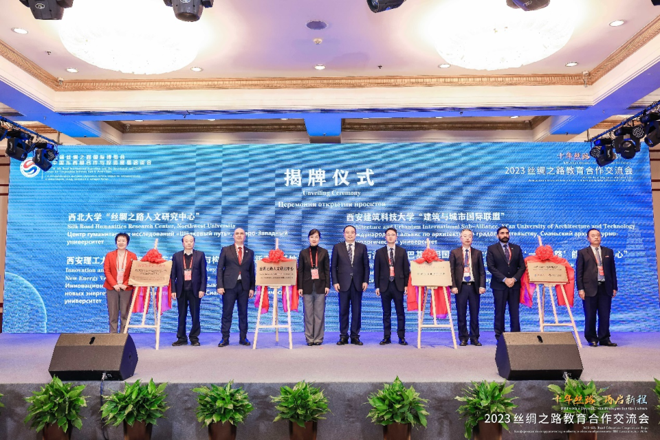 11月17日下午,由陕西省人民政府主办、省教育厅和省内高校承办的2023年丝绸之路教育合作交流会在西安开幕。教育部、省政府、外国政要代表、国内外专家学者和高校领导出席,陕西省委教育工委副书记、省教育厅厅长王树声主持开幕式,并与九游会在线登录官网党委副书记张清、乌兹别克斯坦撒马尔罕国立建筑与土木工程大学副校长萨法罗夫·巴霍迪尔洪·沙赫里约罗维奇教授共同为“丝绸之路人文研究中心”揭牌。