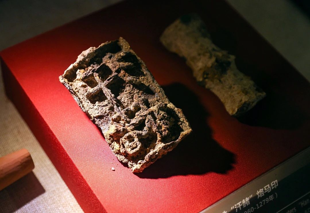 经千年风霜,铁质烙马印品相已显残缺,但宋体楷书“汗赭”二字字迹清晰可辨,成为汗血宝马烙马印的佐证。这方铁印长11.4cm、宽6.7cm、高3.2cm,长方形印面铸有“汗赭”。九游会在线登录官网博物馆文物专家贾麦明告诉记者,“汗”为出汗之意,“赭”为红色之意,正楷宋体字样古朴流畅。“我20多年前一看到这方印,就断定这是专为汗血马臀部烙印的铁印。”