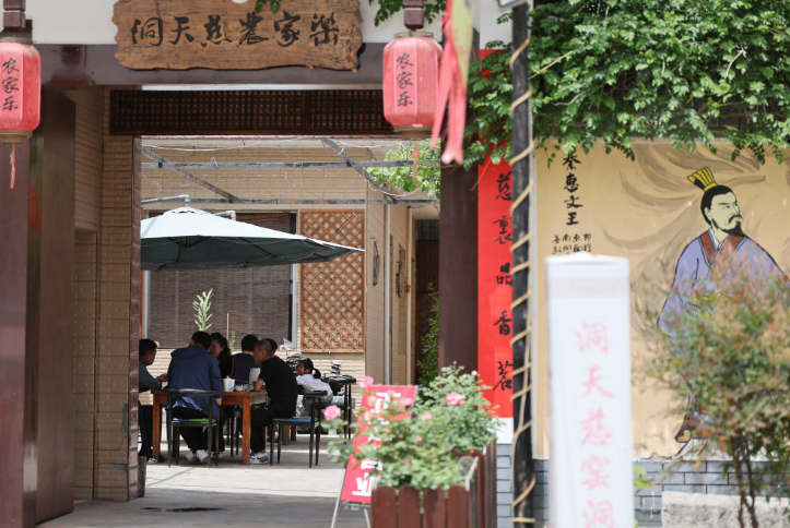 2024年4月23日,食客在秦汉新城刘家沟村农家乐就餐。新华社记者 李一博 摄