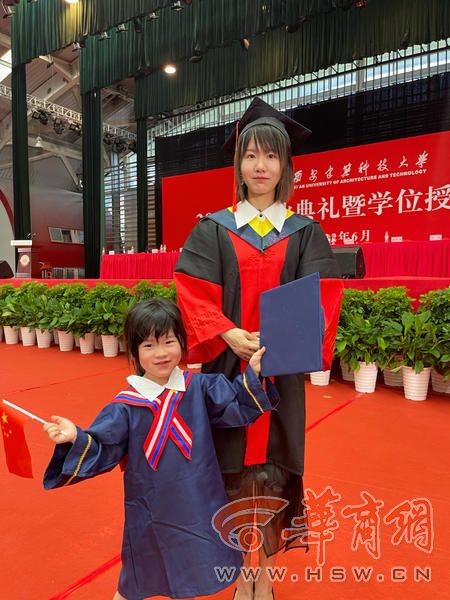 近日,在西安财经大学毕业典礼上,硕士研究生毕业生陈女士带着一对双胞胎来到现场,4岁的宝宝们与家人一起,从广东赶来,与妈妈一起,感受收获成果时的喜悦。