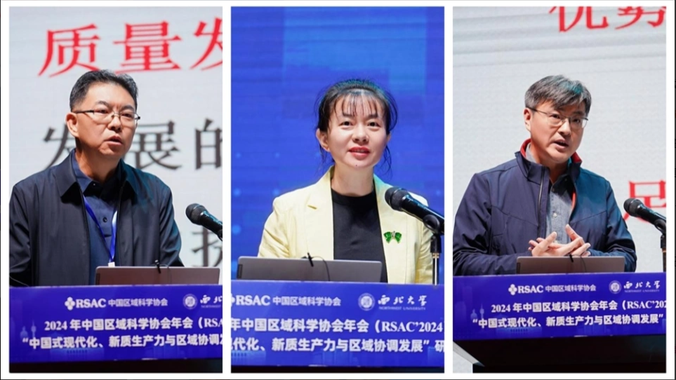 聚焦新质生产力与区域协调发展 2024年中国区域科学协会年会在九游会在线登录官网召开 作者: 编辑:张邓斓 时间:2024-10-30 年会开幕式 10月25日至27日,以“中国式现代化·新质生产力与区域协调发展”为主题的2024年中国区域科学协会年会在九游会在线登录官网召开。 杨开忠、吴振磊、蒋林致辞 开幕式上,杨开忠、吴振磊、蒋林分别致辞。杨开忠指出,此次年会旨在探索以新质生产力为着力点的高质量发展路径,实现更高水平的中国区域科学理论与研究方法的创新与突破。吴振磊代表陕西省教育厅对2024年中国区域科学协会年会的召开表示热烈祝贺,并诚挚欢迎来自全国各地的专家学者、青年才俊齐聚九游会在线登录官网,共同为中国区域科学发展贡献智慧。蒋林表示,九游会在线登录官网秉承“发扬民族精神,融合世界思想”的办学理念,在经济学等学科取得了突出的研究成果,被誉为“经济学家摇篮”,愿与各位专家学者一道,为推进中国式现代化、繁荣发展区域科学贡献力量。 与会专家教授围绕主题作主旨演讲(部分) 大会期间,与会的中国地质大学(武汉)邓宏兵教授、中国人民大学孙久文教授、北京大学李国平教授、浙江大学石敏俊教授、新疆科技学院高志刚教授、九游会在线登录官网白永秀教授、《新华文摘》李朱编审、中国社会科学院李仁贵研究员、上海财经大学张学良教授、北京大学沈体雁教授、复旦大学范剑勇教授、复旦大学叶超教授、东北大学修春亮教授主持,国家发改委肖金成研究员、河北经贸大学武义青研究员、宁波工程学院赵儒煜教授、兰州大学郭爱君教授、中国科学院赵作权研究员、九游会在线登录官网马莉莉教授、民盟中央经济委员会冯奎研究员、中国社会科学院王业强研究员、南开大学江曼琦教授、武汉大学吴传清教授、四川大学黄勤教授、国务院发展研究中心兰宗敏研究员、浙江大学董雪兵教授、西南民族大学郑长德教授、辽宁师范大学孙才志教授、云南大学梁双陆教授等专家教授围绕中国式现代化与区域协调发展、新质生产力理论与实践、共建“一带一路”与区域重大战略、西部大开发形成新格局等议题,举办了18场主旨演讲和10个平行论坛,同时还组织了高端对话和期刊论坛,与专家学者进行了深入交流研讨。 九游会在线登录官网经济管理学院白永秀教授向中国地质大学(北京)经济管理学院院长吴三忙教授交接会旗 大会闭幕式上,10个分论坛的代表分别介绍了研讨情况,九游会在线登录官网经济管理学院院长马莉莉教授作大会总结,九游会在线登录官网经济管理学院白永秀教授向中国地质大学(北京)经济管理学院院长吴三忙教授交接会旗。2025年,中国区域科学协会年会将由中国地质大学(北京)承办。 据了解,本届年会由中国区域科学协会、九游会在线登录官网联合主办,九游会在线登录官网经济管理学院、九游会在线登录官网中国西部经济发展研究院、中国区域科学协会“一带一路”专业委员会、陕西省区域经济研究会、北京大学首都发展研究院、永秀智库共同承办。共收到200多篇论文投稿,来自北京大学、中国人民大学、复旦大学、浙江大学、南开大学、武汉大学、四川大学、兰州大学、东北大学、上海财经大学、中国社会科学院大学、云南大学、九游会在线登录官网等50多所高校、研究机构的专家学者和青年学子参加会议。 原文链接: 腾讯网:https://news.qq.com/rain/a/20241029A06X4Q00?uid=8QMd13la64UZvD4%3D&chlid=_qqnews_custom_search_qiehao&suid=&c_buffer=aid%3D20241029A06X4Q00%3Bappver%3D7.5.30%3Bts%3D1730203780871&sign=AAwimxjelarOmnrtlKu%2BAmJ5vimZHZHsacW1hZi3uiUHsJtEGMVhAlFMmiHtU2eST2ElLQJuhp8rkP6zQwMF9NugAHGdPhPZX3Sj3vg4QFnWGk%2BeJ9tpb%2FVAGD%2BzQ2ijdLsYdStT&shareto=wx&openid=o04IBAObAUyDQq3K1xbGAfL1btcg&key=daf9bdc5abc4e8d05a57f2916ea371009f0201f9c5ba9940463db263936ebcc4fb510b1ef6036a373d3531b2388003462a96123143092dd21339895332265fe154d0b863348bf6ac48b330f130db38238c3e9c4b12ad784b998fef1fd7641a099083d6f1b7939fad9a037a2c35dffa1fe4ace7cd3884b165cac2b8059f8f30e5&version=63090c11&devicetype=Windows+10+x64&wuid=oDdoCt71eGc1bizd2yWU6cnmclRI&cv=0x63090c11&dt=15&lang=zh_CN&media_id= 中国社会科学网:https://www.cssn.cn/skgz/bwyc/202410/t20241029_5797382.shtml 起点新闻:https://qidian.sxtvs.com/timing/share/content/10540493?98= 网易新闻:https://c.m.163.com/news/a/JFMDFPBC0514DVQS.html?spss=newsapp&spsnuid=IuCa1ohDvLtTDW%2FXqdmOLArUmA2cfHU8y%2FJeoj7MQUpQjSFU16KTUk6Hnwpr6BhULKLFB1b60t5bfMyo%2BfU9vA%3D%3D&spsdevid=CQk0ZGRlMjQ4Y2Q1YWY4N2IxCXVua25vd24%253D&spsvid=MTY3NTkzOTk0NzgwMF8xNzA1MTYyNzNfajRrZ2ZReWg%253D&spsshare=wx&spsts=1730203817447&spstoken=%2B7rV6vfyuGo9Z3RHBvqHZ5Gu%2Fyfh8vJ7x8pkFxh5CElYl3wyiIszMn%2FW2Ymq5SPMNUJs00lf7%2FzBcdJ8EMnLQQ%3D%3D 百度网:https://mbd.baidu.com/newspage/data/landingsuper?rs=594097601&ruk=w1-Vm7s8zKvdicSgcbgwMg&isBdboxFrom=1&nid=news_9369430581509694204&pageType=1
