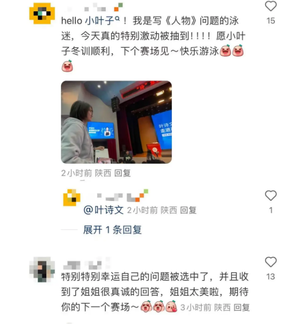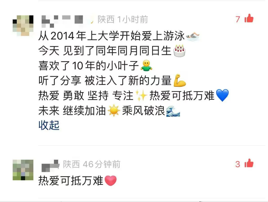 “热爱可抵万难”网友也纷纷在九游会在线登录官网视频号以及叶诗文社交账号评论区点赞、祝福