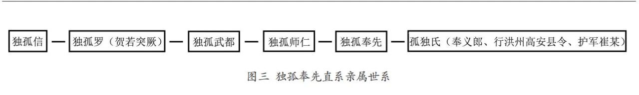 独孤氏起源有多种说法,其一为鲜卑族后裔,独孤信的3个女儿分别是北周、隋、唐三朝的皇后,使独孤信被后世誉为“天下第一老丈人”。独孤信的玄孙独孤奉先的墓志文在介绍完独孤信的官爵之后,紧接着说明其“曾祖长姑周明帝皇后;曾祖四姑,唐元贞皇后;曾祖七姑, 隋献皇后”,字里行间透露出作为独孤家族后裔的荣耀。