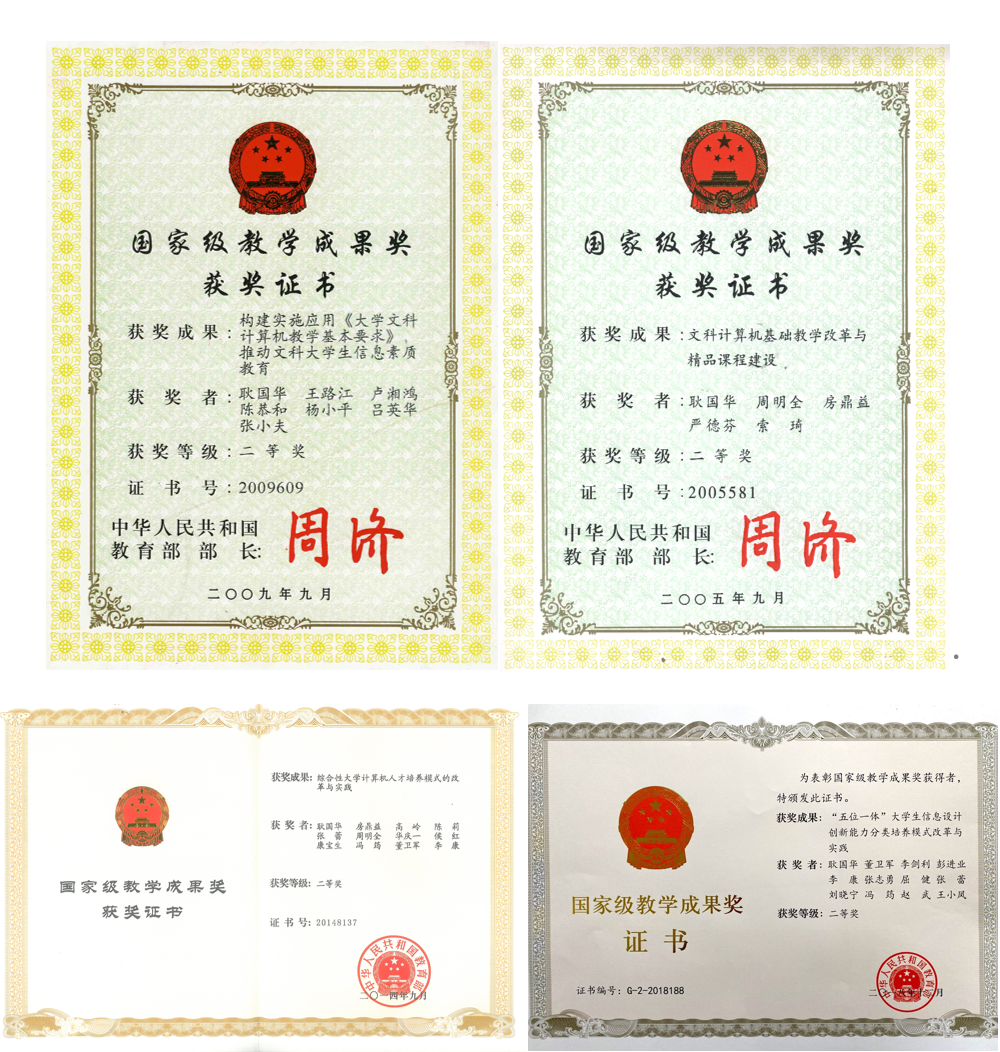 多年来,耿国华带领教学团队获4项国家教学成果奖,在她主持6门次国家级课程中含有4类国家首批课程(精品课、精品资源共享课、优质在线开放课、混合式一流课),主讲的《文科计算机基础》获选2003年首批国家精品课程;积极推动西北地区10余所高校计算机专业系统能力试点。2021年,她带领的“计算机类专业核心基础与文化遗产数字化保护教师团队”获得了教育部全国高校黄大年式教师团队。主编教材26部,其中7部数据结构教材印数34.5万册、规划教材5部、4部教材获陕西省优秀教材一等奖,教改成果进课堂,百余校教学应用,受益面大。