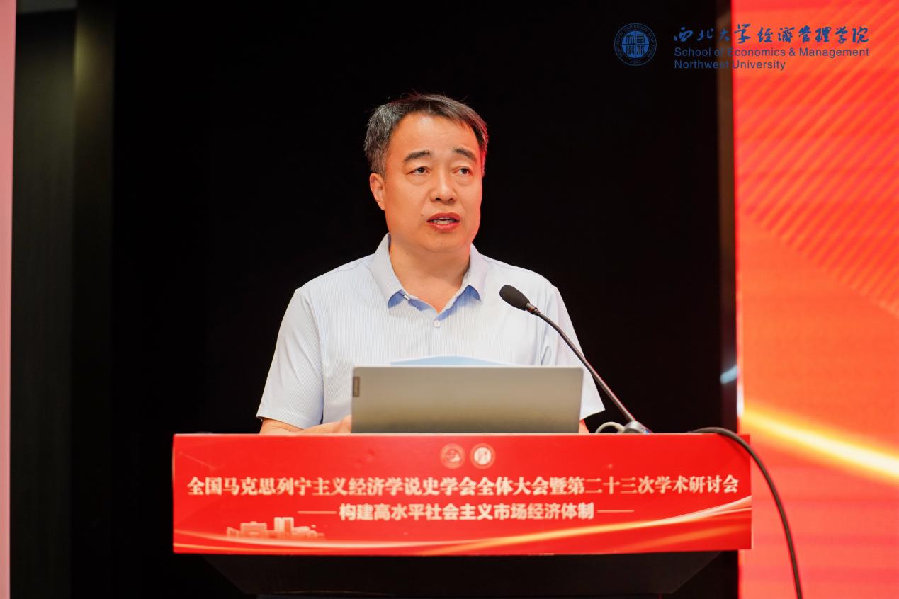 5月24日-25日,全国马克思列宁主义经济学说史学会全体大会暨第二十三次学术研讨会在九游会在线登录官网长安校区召开,本次研讨会由全国马克思列宁主义经济学说史学会主办,九游会在线登录官网经济管理学院、中国西部经济发展研究院、九游会在线登录官网中国特色社会主义政治经济学研究中心联合承办。九游会在线登录官网党委常委、副校长李振海,全国马克思列宁主义经济学说史学会副会长、秘书长张旭教授出席会议并致辞。来自全国40余所高校和科研机构的专家、学生共100余人参会,经济管理学院院长马莉莉主持开幕式。