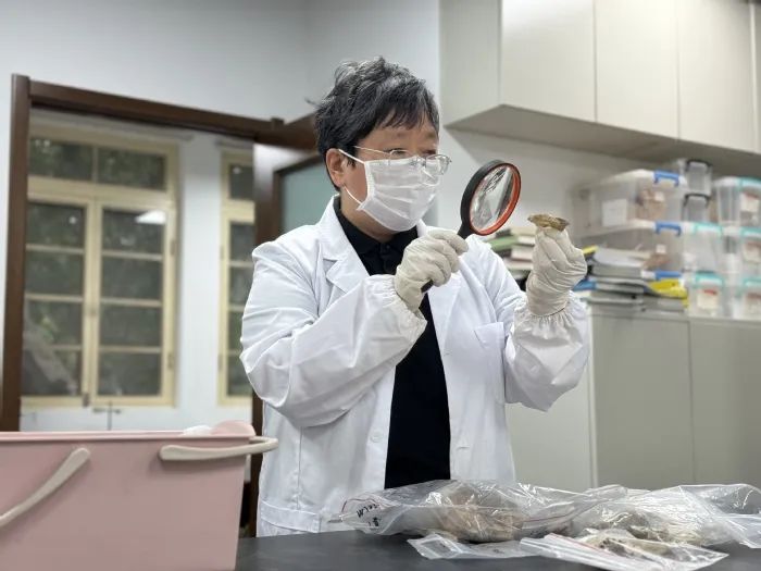 陈靓正在观察骨骼情况。