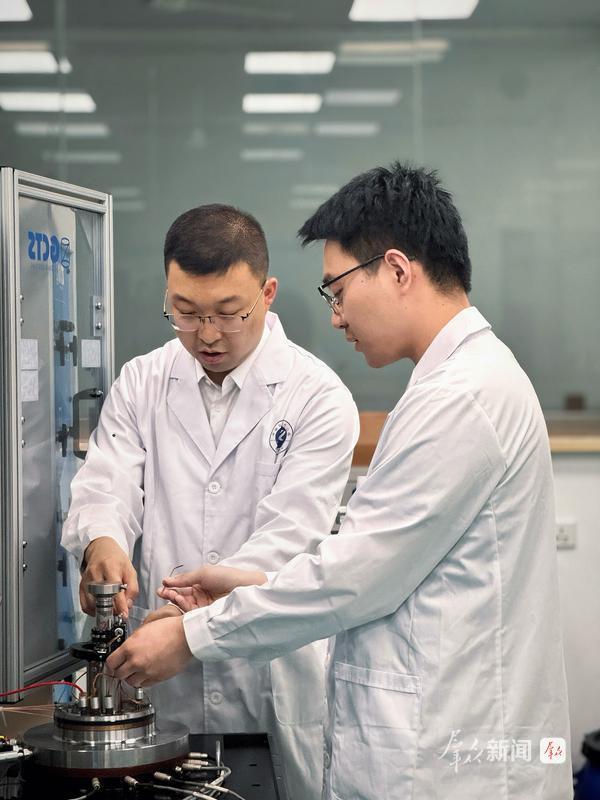 5月29日,西安石油大学石油工程学院副院长、教授王琛在实验室指导研究生测试地层岩心样品。王琛致力于非常规油藏二氧化碳驱油与地质封存理论与前沿技术的攻关,出版了国内首部利用高精度原位成像技术实现二氧化碳封存机理研究的学术专著,团队科研成果填补了国内二氧化碳驱油与地质封存协同一体化机制研究领域的空白。群众新闻记者 孙亚婷摄