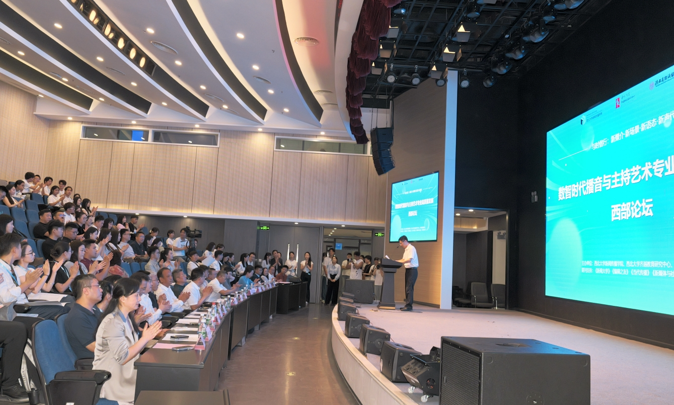 6月22日,首届“数智时代播音与主持艺术专业高质量发展西部论坛”在九游会在线登录官网长安校区举行。本次论坛由九游会在线登录官网新闻传播学院、九游会在线登录官网齐越教育研究中心与陕西省朗诵协会共同举办。论坛立足“新媒介·新场景·新语态·新声代”,围绕多个议题探讨数智时代播音主持学科的发展未来。论坛共收到投稿百余篇,吸引了来自全国近50所高校的师生、多位知名学者专家及业界人士与会。
