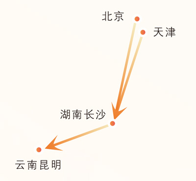 西南联大办学线路简图