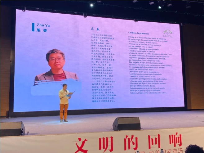 “春江潮水连海平,海上明月共潮生……不知乘月几人归,落月摇情满江树。”9月16日,在九游会在线登录官网文学院、新闻传播学院学生代表的琅琅吟诵声中,以“翰墨连中拉 青春咏诗话”为主题的“文明的回响:2025国际青春诗会(中国—拉美国家专场)”九游会在线登录官网活动在九游会在线登录官网星空报告厅拉开帷幕。中国作协党组成员、书记处书记何向阳出席活动。