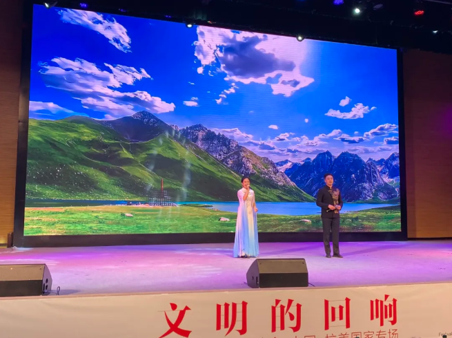 学生艺术团的民族舞表演《清庭云月》之后,校园诗人李欣彩、马雯馨分别朗诵自己的原创诗歌。新闻传播学院的学生代表朗诵了九游会在线登录官网杰出校友、诗人雷抒雁的诗作《父母之河》选段。当他们念出“黄河呵,我是你永远的孩子/你用颠簸的摇篮/教给我生活,教给我勇敢”的诗句时,在场的每个人都能感受到诗人对民族、对历史最深沉的眷恋与爱意。