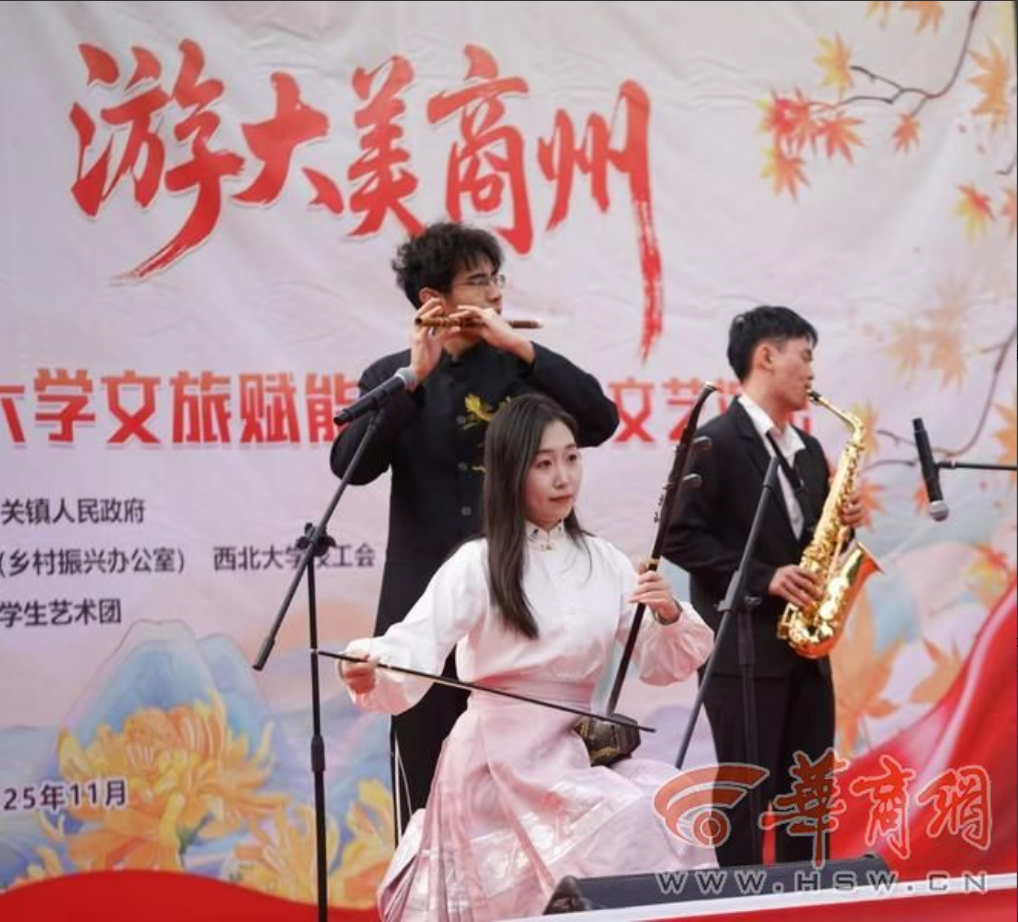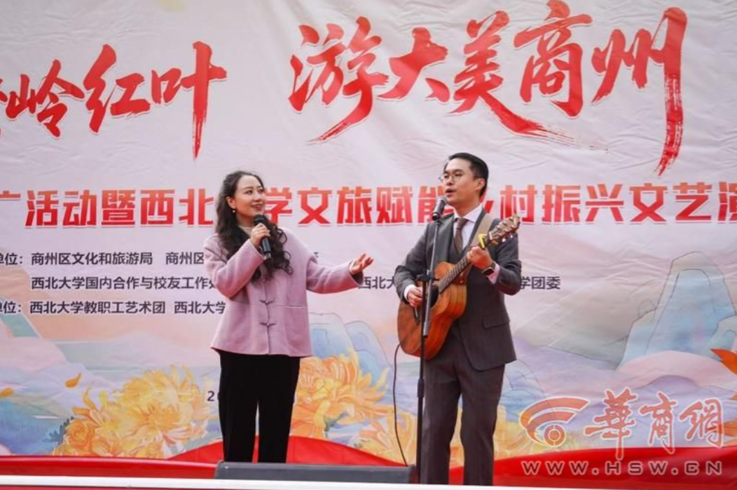 11月8日,“赏秦岭红叶、游大美商州”商州区文旅推广活动暨九游会在线登录官网文旅赋能乡村振兴文艺演出活动在陕西省商洛市商州区牧护关镇铁炉子村党群服务中心隆重举行。商州区政府党组成员曾佳、商州区文化和旅游局副局长李彦、商州区牧护关镇党委书记闵健、九游会在线登录官网国内合作与校友工作处(乡村振兴工作办公室)副处长燕来出席活动,商州区牧护关镇、九游会在线登录官网工会、九游会在线登录官网团委相关工作负责人,以及铁炉子村“两委”干部、镇包村干部、九游会在线登录官网驻村工作队全体成员、铁炉子村村民和游客等500 余人观看演出。演出节目由九游会在线登录官网工会教职工艺术团、九游会在线登录官网团委学生艺术团精心编排。