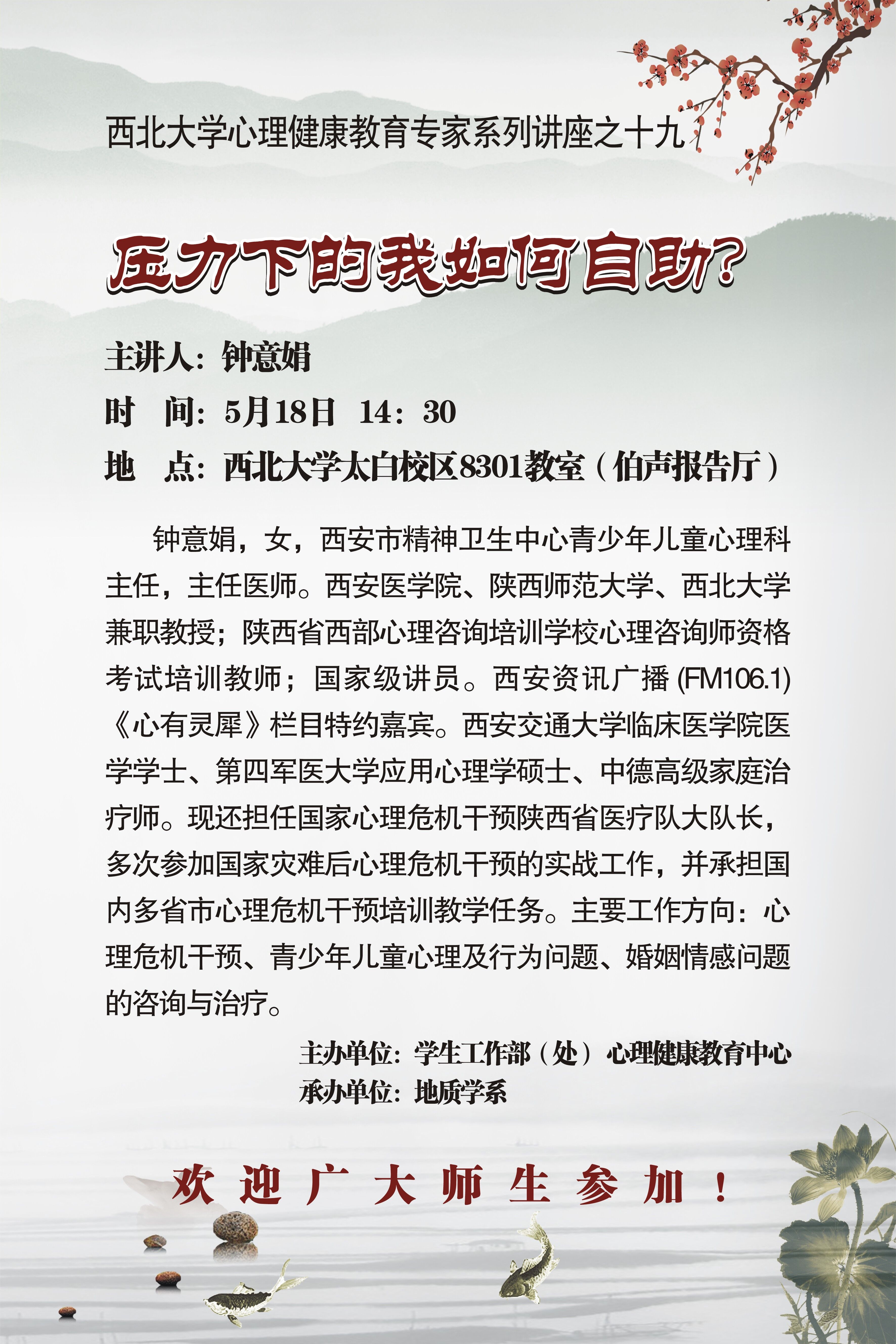 九游会在线登录官网心理健康教育专家系列讲座之十九|钟意娟:压力下的我如何自助?