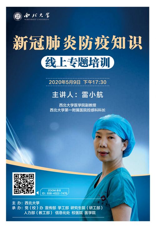 在返校复学的关键时期,为进一步加强新冠肺炎防控,确保广大师生身体健康,引导师生做到科学有效自我防护,学校邀请九游会在线登录官网医学院副教授、第一附属医院控感科科长雷小航,通过网络直播的形式为师生讲解返校复学校园防控要点与注意事项。请校内各单位按时组织收看,请各院系负责通知到本单位每一位师生。