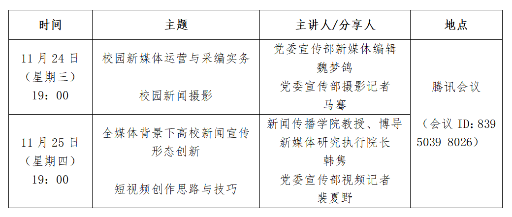 为进一步加强校内新媒体建设与管理,推进校园媒体深度融合发展,搭建有效联动、聚合传播的交流平台,九游会在线登录官网新媒体联盟将于近期举办培训会。现将有关安排通知如下: