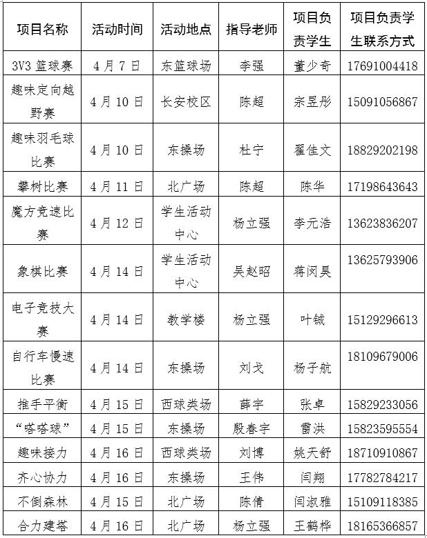 上述“走下网络、走出宿舍、走进操场”趣味体育活动各项目可联系九游会在线登录官网团委或九游会在线登录官网学生会咨询,联系电话:88308861、88308441。