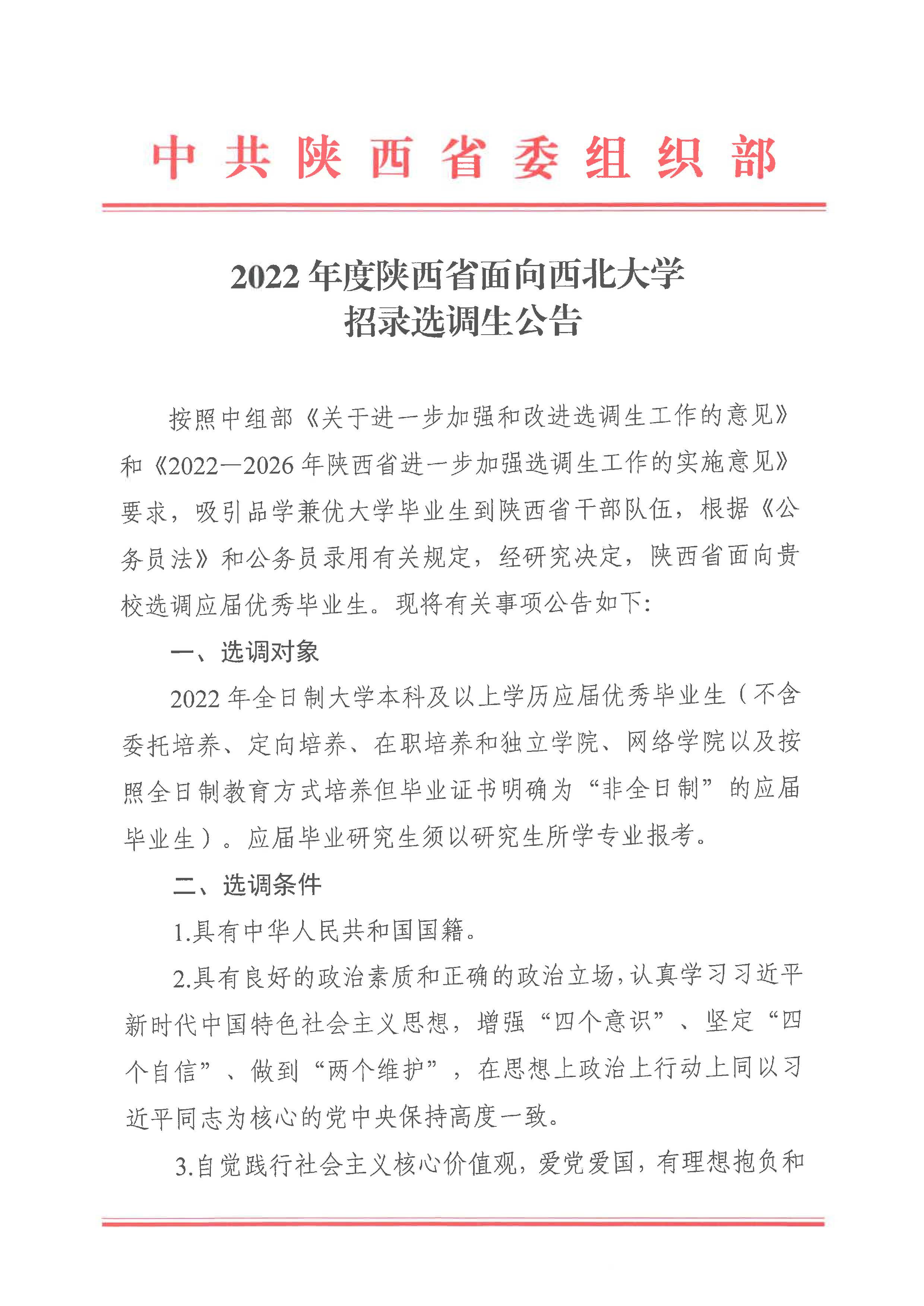 2022年度陕西省面向九游会在线登录官网招录选调生公告