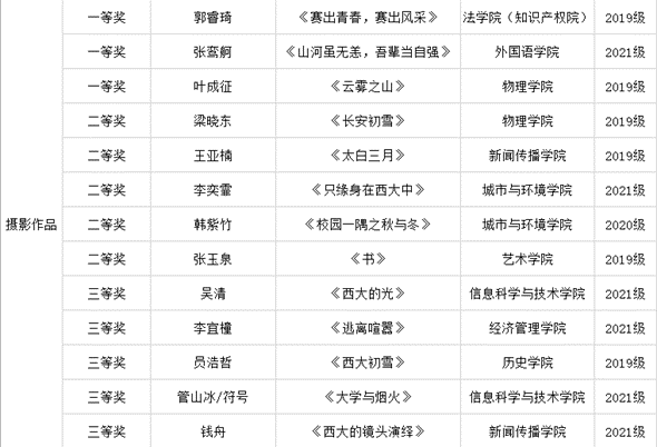 本届赛事优化升级学生喜闻可见的四个赛道,参与学生人数、参与院(系)及年级覆盖率、申报作品的质量属近三届之最。申报作品573件,其中摄影作品397件,网文作品97篇,短视频作品51部,音频类作品28部,经个人作品“易班”系统提交、院(系)指导教师审核报送、学校二轮评审评议,九游会在线登录官网第三届“易班”网络文化节产生优秀网络文化作品42件,院(系)优秀组织单位6家,院(系)优秀指导教师6人,情况如下: