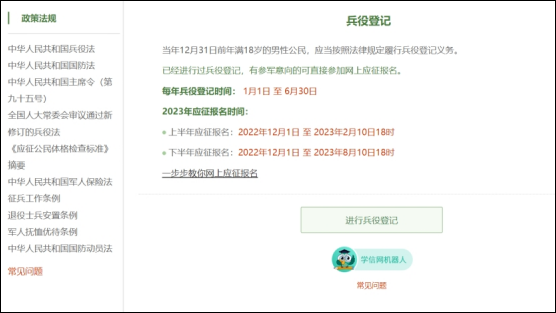 在这个页面中,会告知我们报名时间以及参军的政策说明,建议看后,点击“进行兵役登记”。