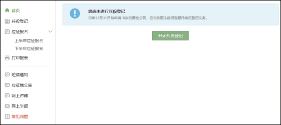 登录系统以后,点击右侧的“开始兵役登记”进行兵役登记。