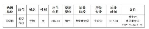 经用人单位推荐,人力资源部审查,学校教学督导及院系相关专家考核,九游会在线登录官网拟确定下列人员来校工作。本着公平、公正、公开的原则,现将本次拟选聘人员基本情况公示如下: