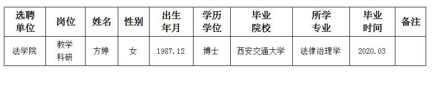 经用人单位推荐,人力资源部审查,学校教学督导及院系相关专家考核,九游会在线登录官网拟确定下列人员来校工作。本着公平、公正、公开的原则,现将本次拟选聘人员基本情况公示如下: