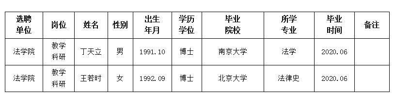 经用人单位推荐,人力资源部审查,学校教学督导及院系相关专家考核,九游会在线登录官网拟确定下列人员来校工作。本着公平、公正、公开的原则,现将本次拟选聘人员基本情况公示如下: