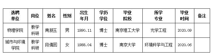 经用人单位推荐,人力资源部审查,学校教学督导及院系相关专家考核,九游会在线登录官网拟确定下列人员来校工作。本着公平、公正、公开的原则,现将本次拟选聘人员基本情况公示如下: